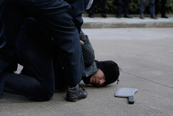 此次应急疏散综合演练以灭火、应急疏散、物资抢运 、反恐、电梯救援、防汛救灾、医疗救护等专项演练为主。反恐演练开始,嫌疑人携带管理刀具出现在三号楼西门时被保卫处治安巡逻队员发现,后勤保卫处值班室接到报警后,立即通知保卫人员赶赴现场处置,对犯罪嫌疑人进行控制,向后勤保卫处负责人和学校反恐防暴工作领导小组报告情况,启动反恐防恐工作预案,同时报告公安部门,后勤保卫处立即对现场进行警戒,控制嫌疑人,并将嫌疑人交由公安部门处置。