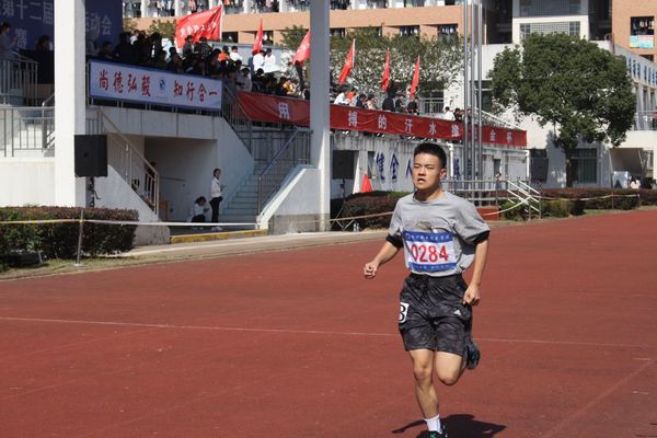 磨练的是非凡的毅力,较量的是超强的体力,拼搏的是出类拔萃的耐力,把长长的跑到跑成一段漫漫的长途,这是你们运动员的征途。听,呼啸的风,在为你们喝彩!听,观众席上如浪的欢呼,在为你们加油!这过程中或许有人欢呼呐喊;或许有人懊恼自责。但在今天,无论是场上的运动健儿还是场下统筹安排的后勤人员,都无一不体现出“永不放弃、永不气馁、永不低头”的体育精神,更展现了衢职学生的精气神!