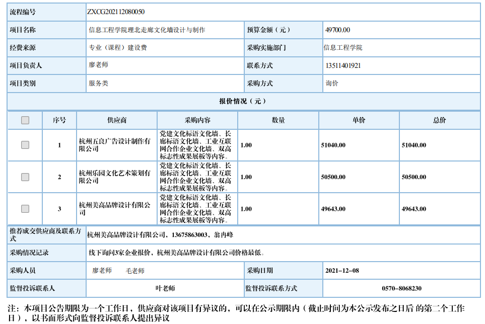 开元网页版信息工程学院理北走廊文化墙设计与制作自行采购信息公示