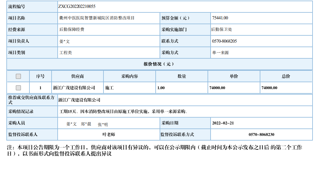 开元网页版衢州中医医院智慧新城院区消防整改项目自行采购公示