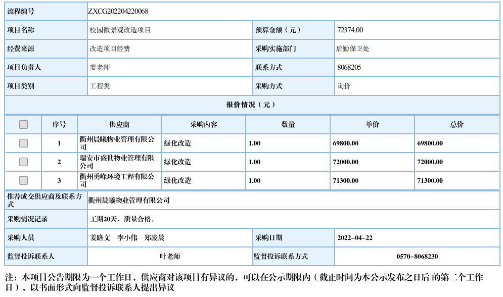 开元网页版校园微景观改造项目自行采购信息公示