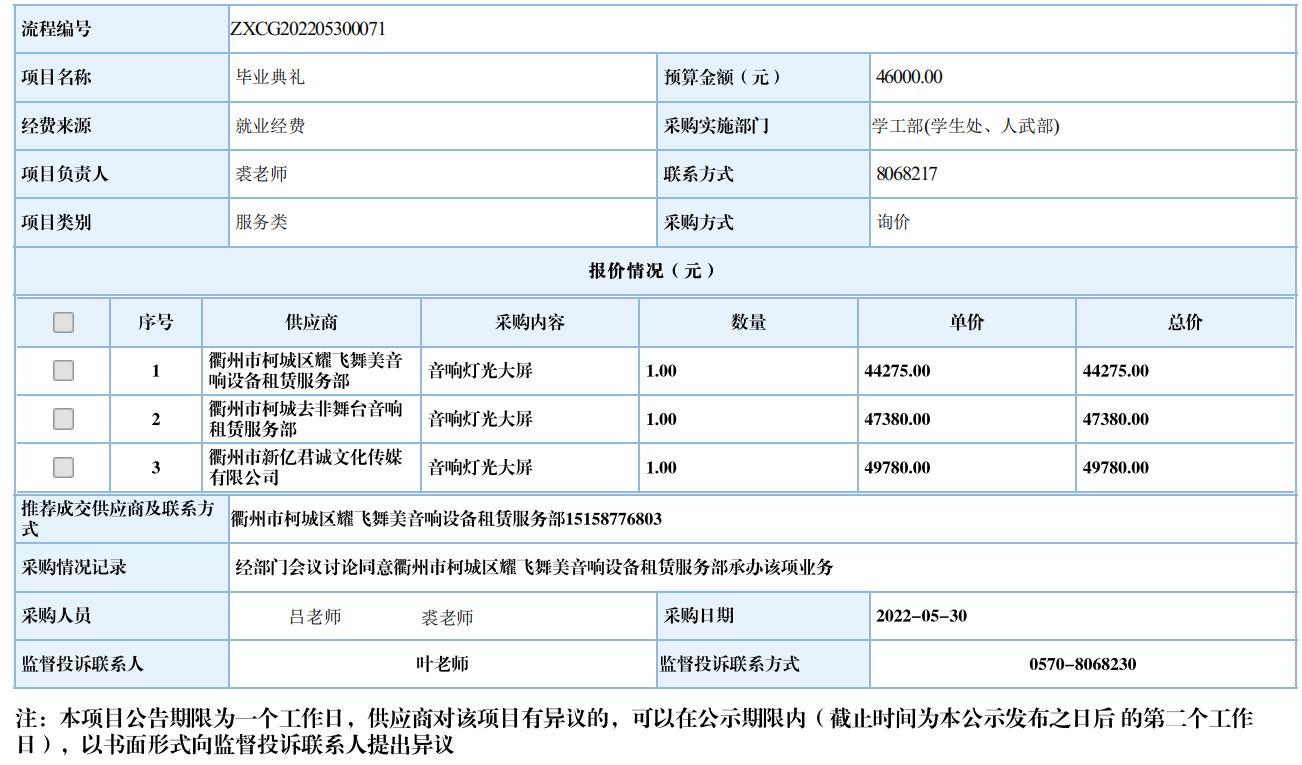 开元网页版毕业典礼自行采购信息公示