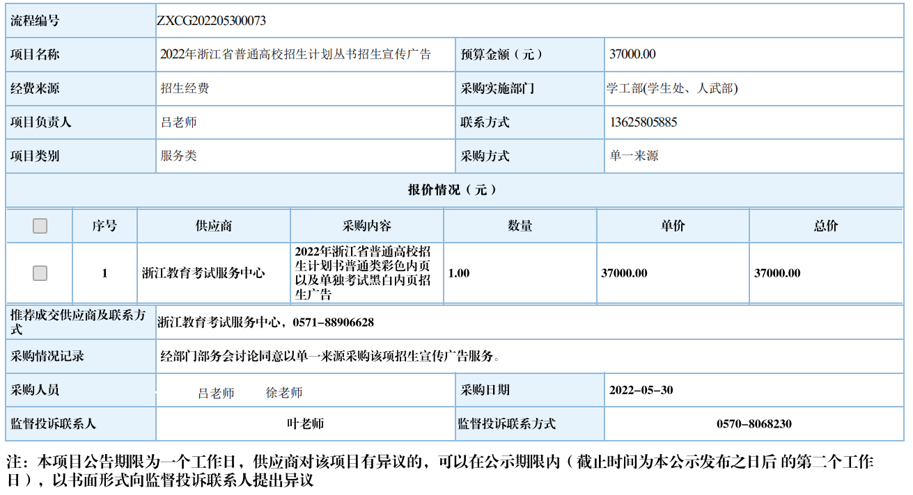 开元网页版2022年浙江省普通高校招生计划丛书招生宣传广告自行采购信息公示