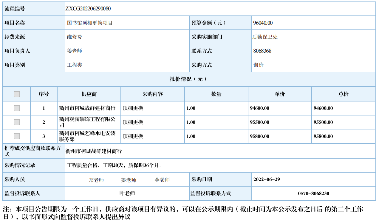 开元网页版图书馆顶棚更换项目自行采购信息公示