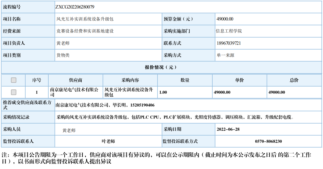 开元网页版风光互补实训系统设备升级包自行采购信息公示