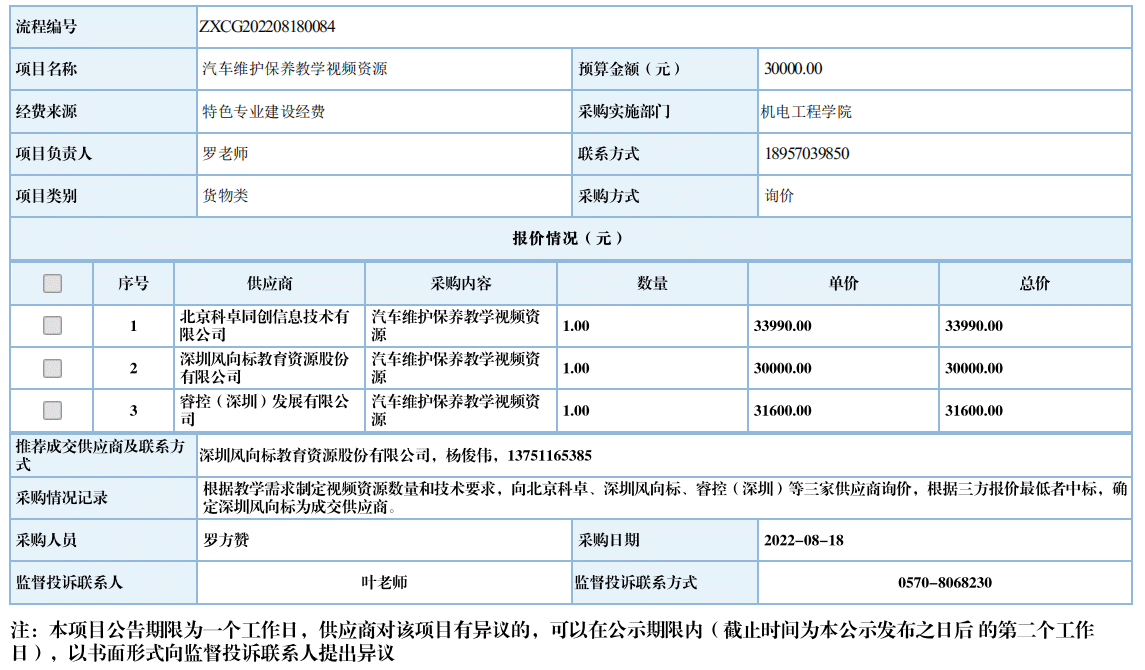 开元网页版汽车维护保养教学视频资源自行采购信息公示