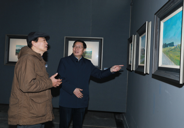 校党委书记徐须实亲临现场观展,高度评价了展览高品质和叶云龙院长的艺术创作精神。他鼓励学院教师积极投身艺术创作,将教学与创作紧密结合,不断提升自身专业水平,为学生提供更具实践性的学习体验,为学院整体艺术发展注入更多活力。