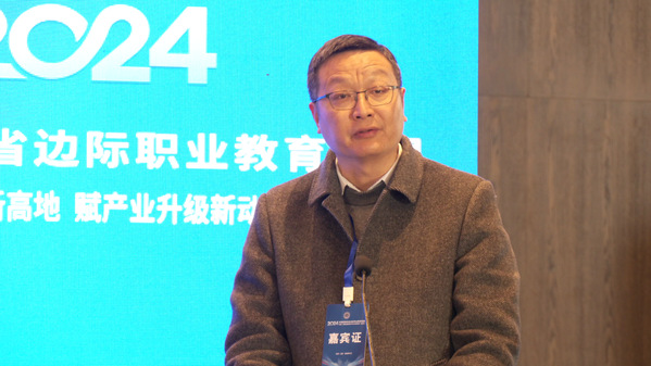 上饶市教育局副局长郑乐春致辞,对参会的各位领导、专家、嘉宾和同仁表示欢迎。他说,四省边际职业教育联盟,为加强区域间职业教育的交流合作和提升职业教育质量提供了重要支撑,期待四省边际联盟单位与上饶市的职业院校及有关企业能够携手共进,共同促进发展。