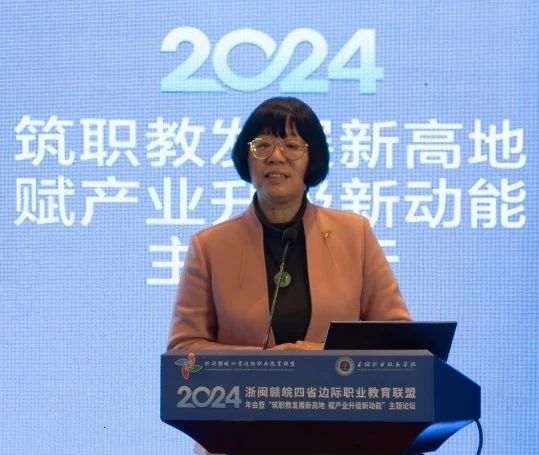 联盟理事会秘书长,我校党委委员、副校长徐浪静代表联盟做2024年联盟工作总结。她表示,2024年是联盟发展的重要一年,这一年,联盟成功推进“四省边际职业培训联盟”迭代升格为“四省边际职业教育联盟”,成功举办联盟五周年系列活动,系统回顾总结了四省边际职业培训联盟过去5年来取得的丰硕成果。希望在联盟成员单位的共同努力下,推动联盟发展成为四省边际乃至浙闽赣皖全域具有一定影响力的职业教育组织。