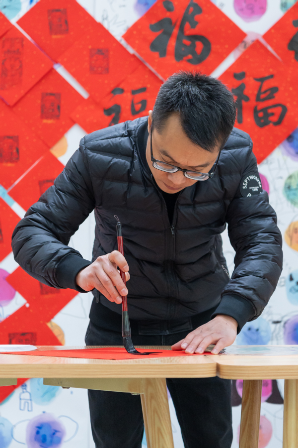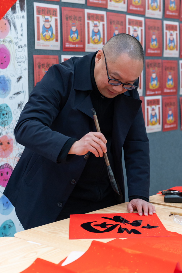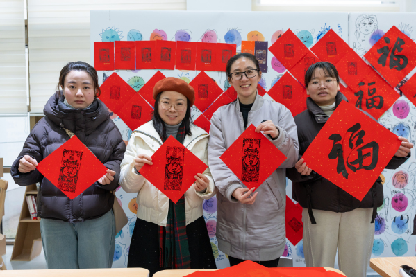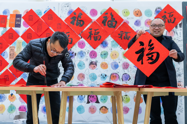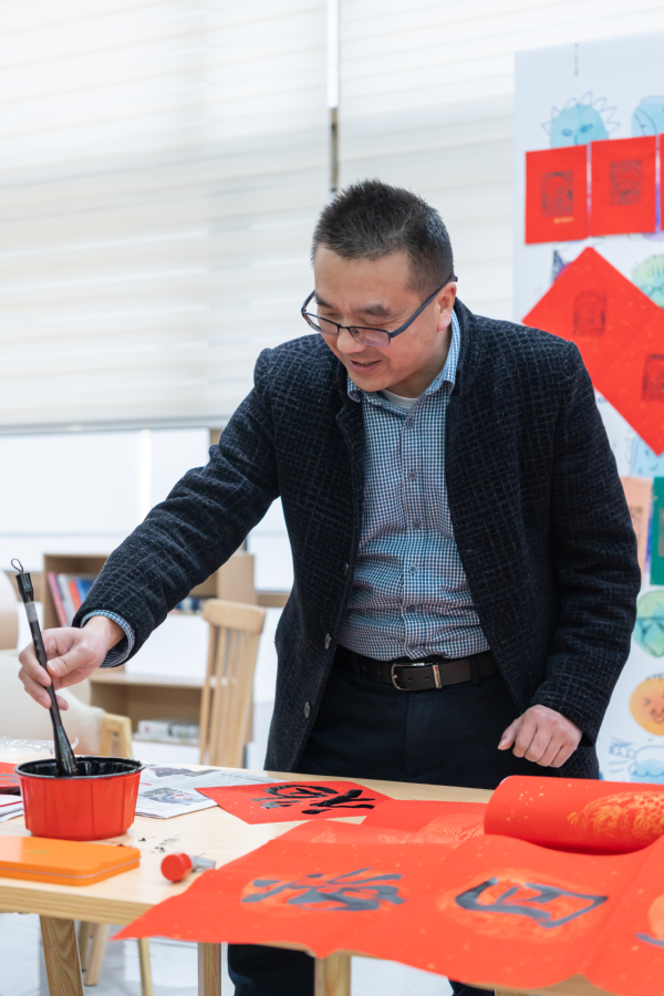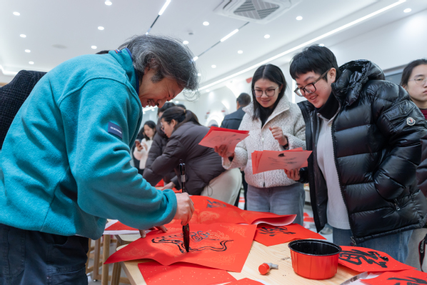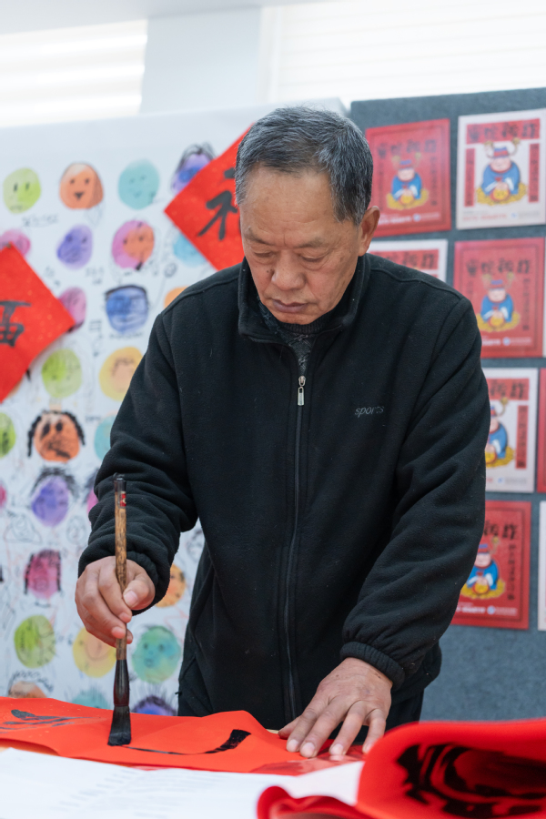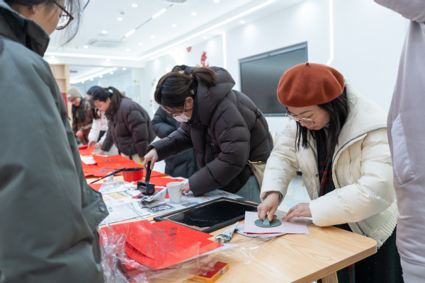 在活动现场,书画协会的老师们挥毫泼墨,书写了一幅幅充满祝福的“福”字和对联,洋溢着喜庆的氛围。师生们纷纷排队领取属于自己的新年礼物,脸上洋溢着幸福的笑容。这些亲手书写的“福”字和对联不仅传递了美好的祝愿,更增进了师生之间的感情交流。