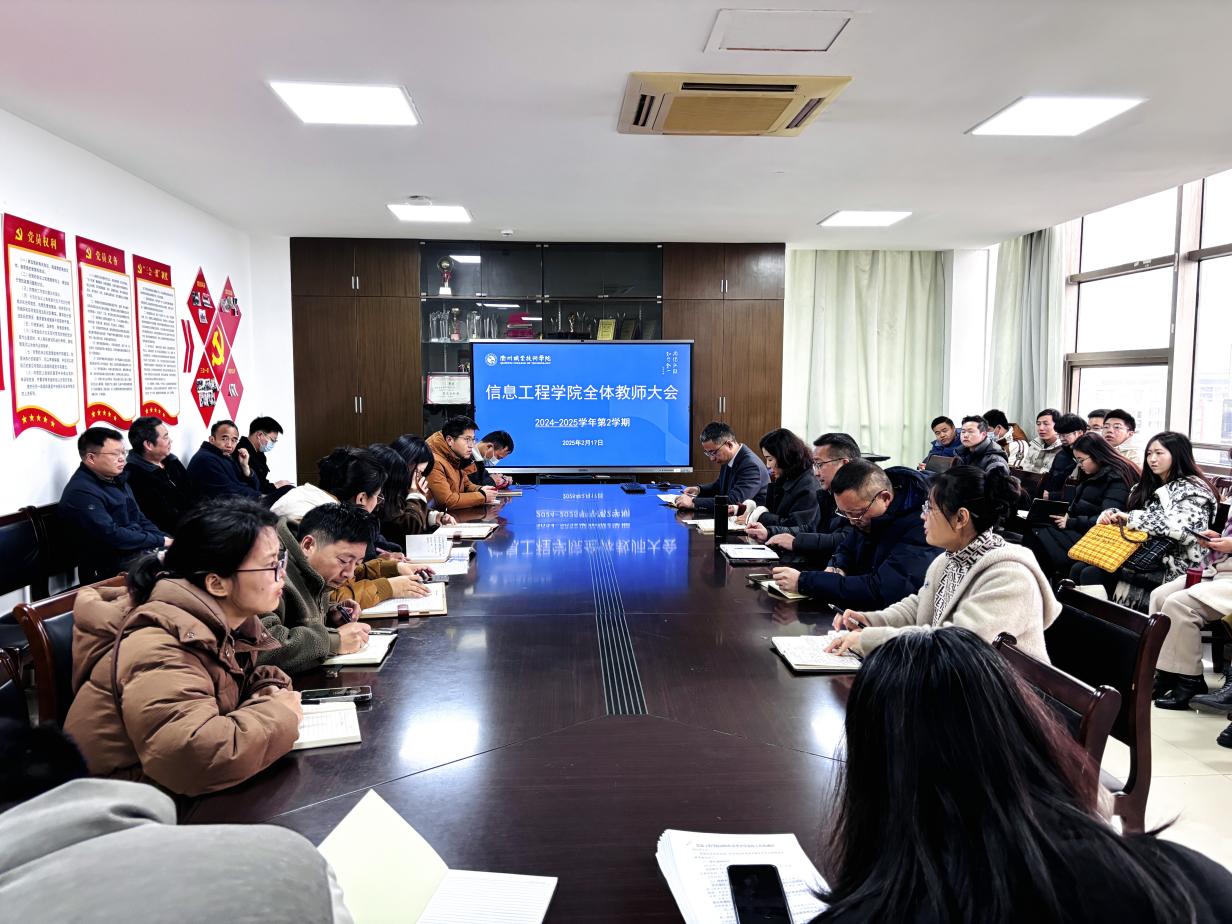 2月17日,信息工程学院在724会议室召开新学期全体教师大会,会议由信息工程学院院长马文龙主持,全体教师参加会议。
