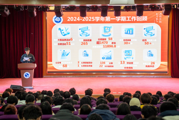 分团委书记何韧之介绍了2024-2025学年第二学期团学工作重点。内容聚焦于“学巨匠精神,铸机电匠心,怀报国之心”主题教育活动,鼓励机电新青年踊跃参与此次主题教育活动,在巨匠精神的熏陶下,体悟专注执着的机电匠心,将报国之志深植心间。